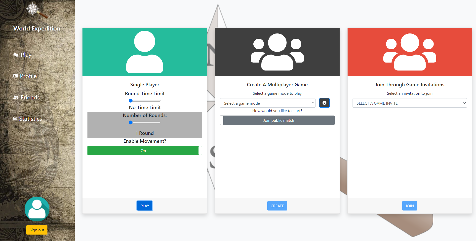 World Exploration is a full stack application game that I created for my Web Technologies course. The aim of the game is to correctly guess where in the world you are looking at! We use Google Map API to show locations in StreetView, and the closer you guess to the location that is shown to you the more points that you will receive. There is a single player mode, or several multiplayer modes to play as well. You can challenge your friends head on with a competitive mode or play co-operatively where everyone guesses based on the same location. Finally, there is a one-on-one mode where instead of automatically generating locations, each player can choose where to drop the other on the planet! It was fun to come up with a game based on travelling, especially as the world was in lockdown during this time.